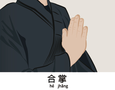 合掌者是以兩手相合,十指相併,平胸合直、不可區曲,是表恭敬之態度。