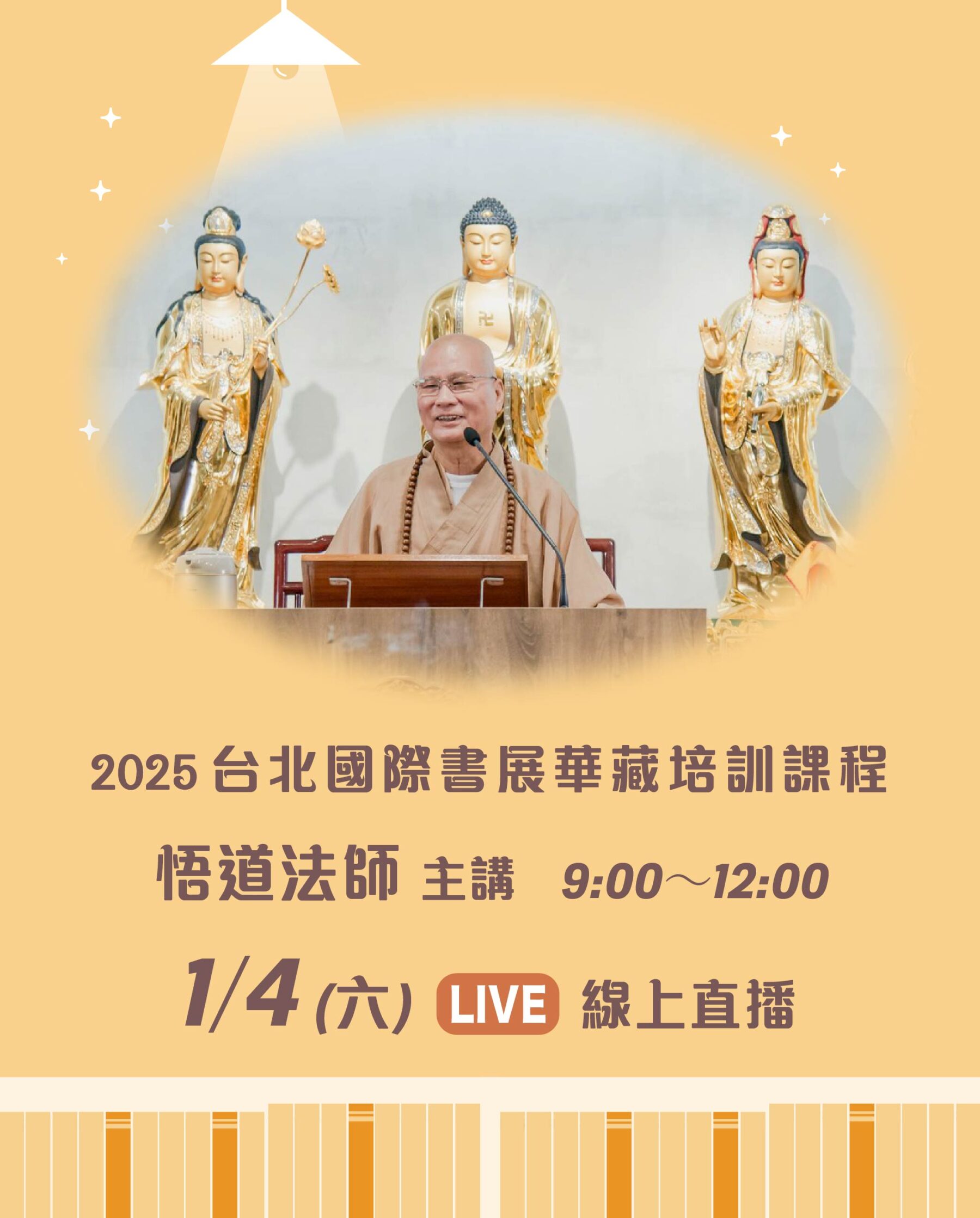 首頁 > 最新消息 > 法會講經 > 講經 > 1/4線上直播|2025國際書展培訓課恭請 上悟下道法師主講