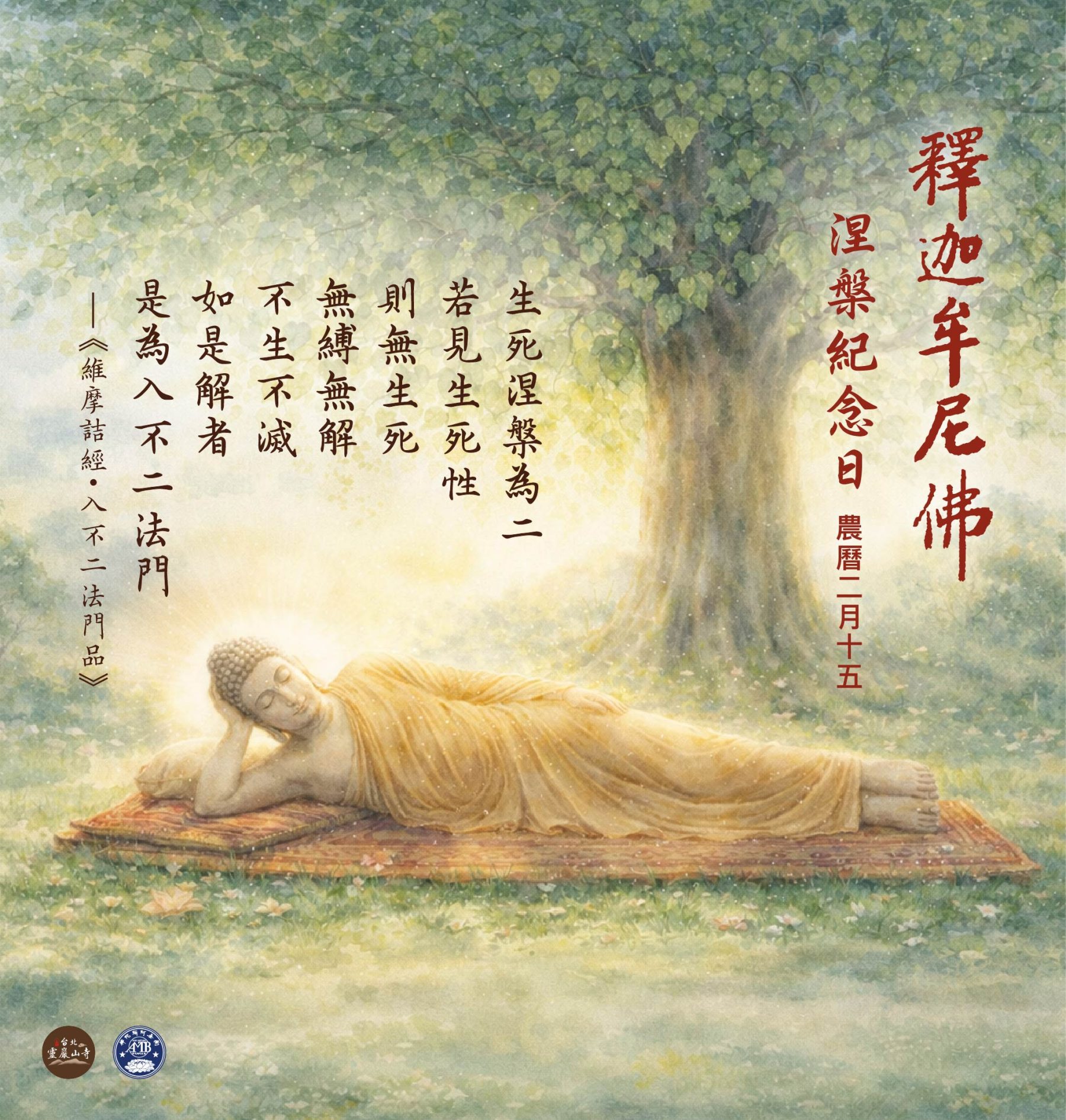 農曆二月十五日,是本師釋迦牟尼佛涅槃紀念日。