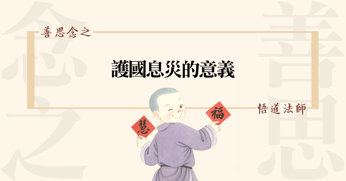 我們護國息災繫念主要是念佛來護國,也護持全世界不要有災難。災難怎麼來的?印光祖師在上海護國息災法會開示,「世之變亂之由奚在乎?一言以蔽之,眾生貪瞋之心所致而已」。貪心隨物質追求激烈的增長,就是現在發展科技、發展經濟,全世界都這樣。發展科技、發展經濟,倫理道德因果教育沒有了,人心就墮落了,心靈被物欲蒙蔽。而且這個貪心隨著追求物欲的享受激烈的增長,物欲享受追求不到的時候就競爭,惡性競爭;再得不到就鬥爭,不擇手段,就是要得到名利;鬥爭再得不到就戰爭。現在世界上的戰爭不都是為這個嗎?戰爭的結果就是災難、破壞、毀滅,「瞋火熾然,世界灰燼矣!」戰爭大家都起瞋恨心,彼此互相殘害。現在的武器都很厲害,第三次世界大戰如果發生,最後必然是核子戰,核子戰是什麼?沒有輸贏,大家一起死。這是我們現前世界的現狀,追究其原因是什麼?只有追求物欲的享受,不重視心靈的修養,倫理道德因果教育都不要了。孟子講:「上下交征利,而國危矣」,現在是「世界交征利,世界危矣」,現在這個世界很危險,我們要看清楚現狀。