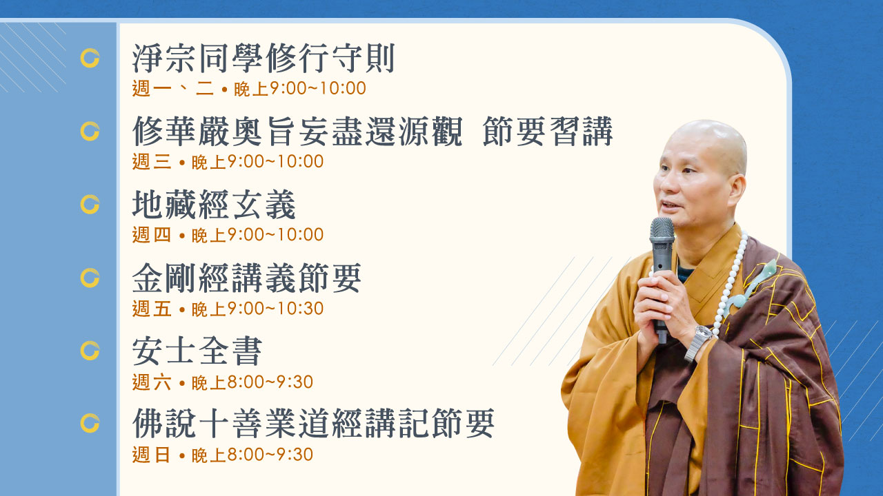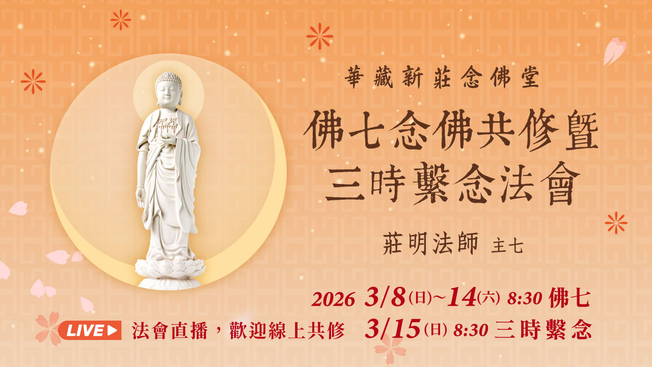 3月8~14日佛七念佛共修,實習主七 莊明法師;15日三時繫念法會,實習主法 莊霖法師,佛七及法會現場直播。歡迎線上同步共修。相關資訊請參閱…