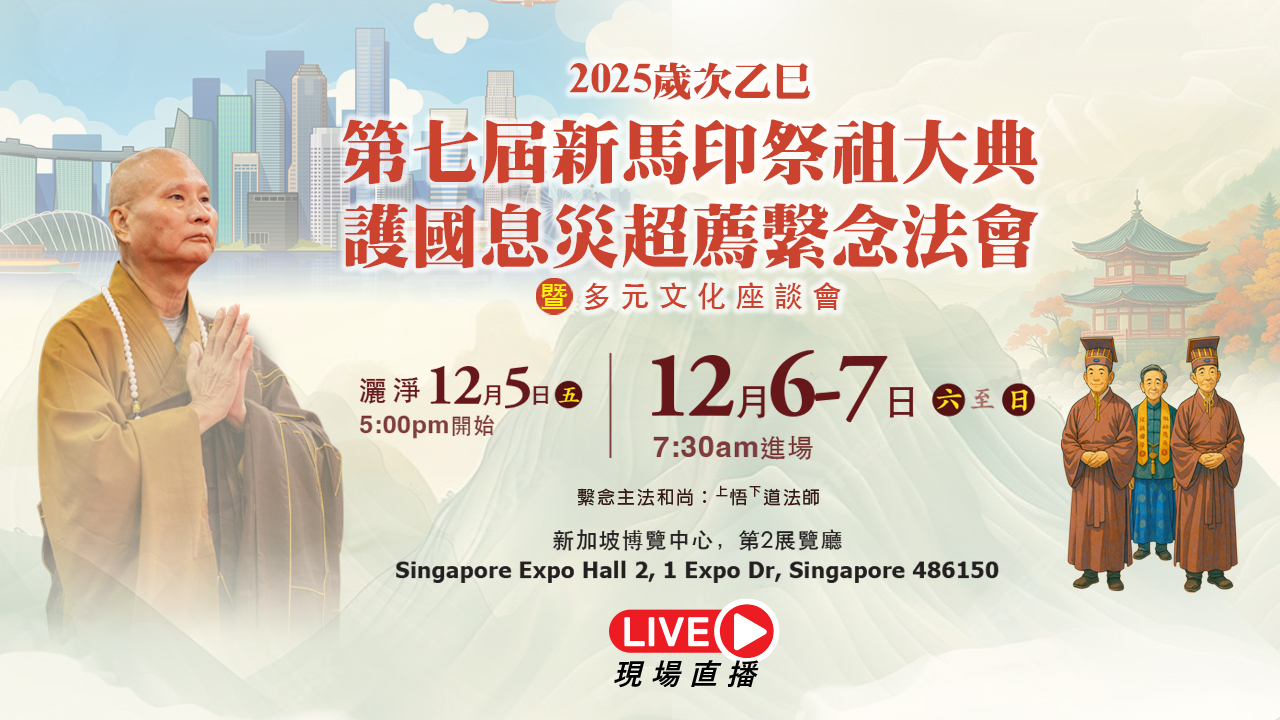 新加坡啟建新馬印祭祖大典暨護國息災超薦繫念法會,恭請悟道法師主法,網路直播,歡迎線上共修。
