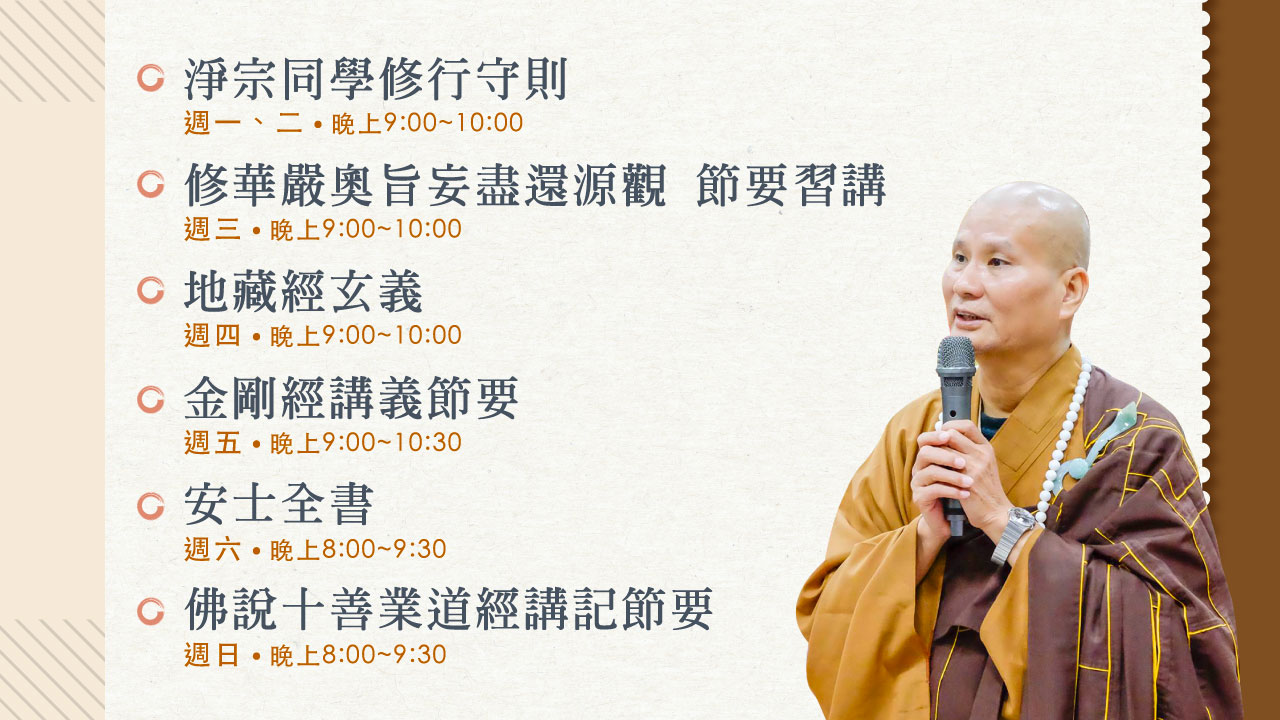 2月24日 晚上7:00~8:30 悟道法師花蓮縣淨宗學會2025乙巳年新春講話,網路直播,歡迎線上聽講。相關資訊敬請參閱…