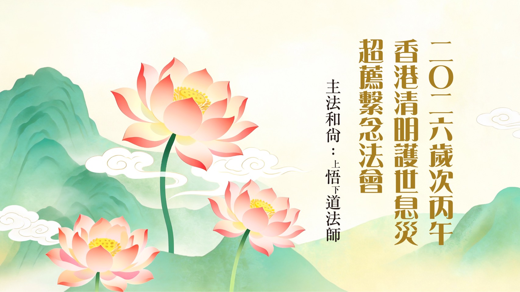 4月28至30日香港佛陀教育協會啟建2026歲次丙午香港清明護世息災超薦繫念法會,恭請悟道和尚主法,法會期間網路直播,歡迎大家線上共修。