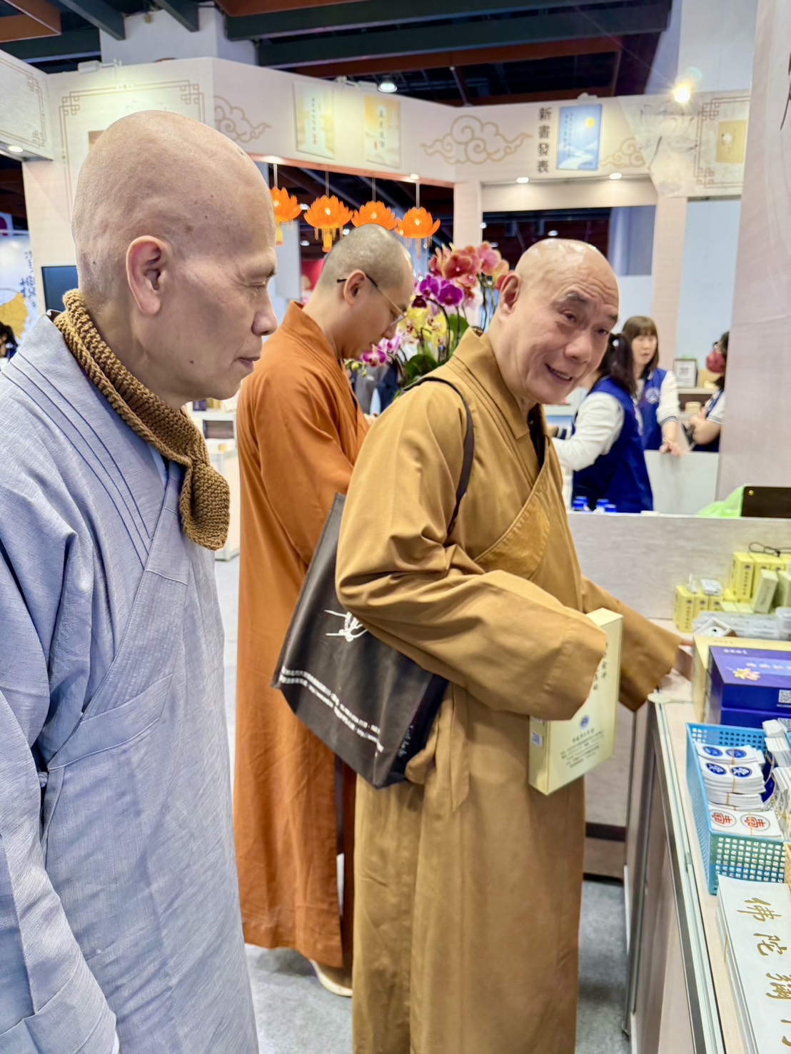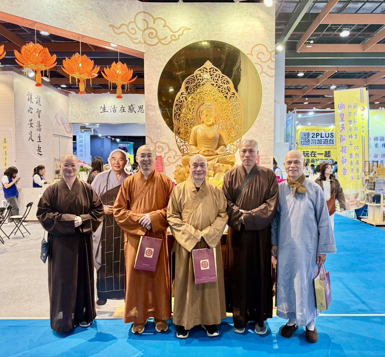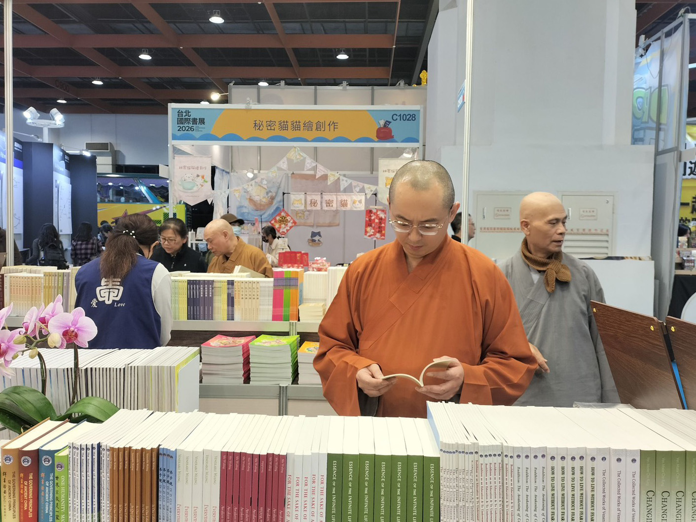 2/4(三)台北國際書展華藏展區,現場人潮絡繹不絕,氣氛歡喜且溫暖,上悟下道法師與多位貴賓親臨會場,共同見證法教的傳承與感動。