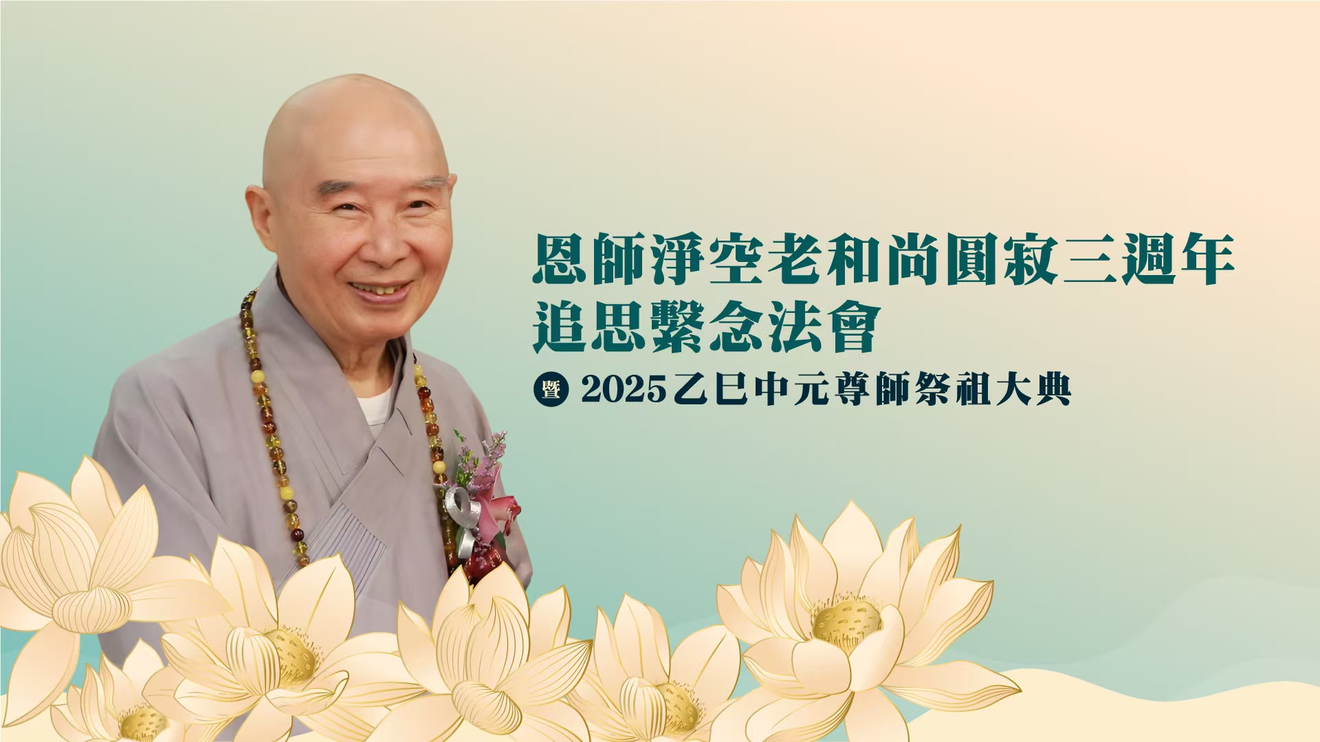 8/8~10線上直播共修|恩師 淨空老和尚圓寂三週年追思繫念法會暨2025乙巳中元尊師祭祖大典
