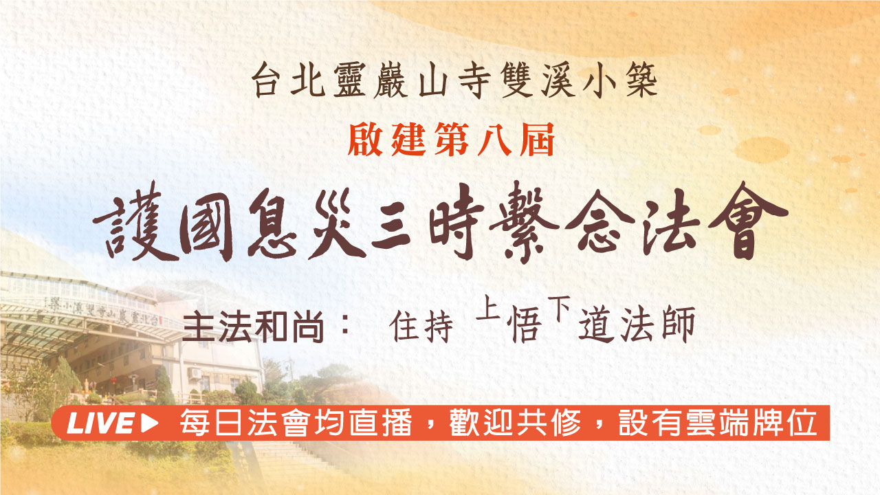 台北靈巖山寺雙溪小築謹訂於 2023 年 12 月 3 日,啟建第八屆護國息災百七繫念法事,相關資訊請參閱…