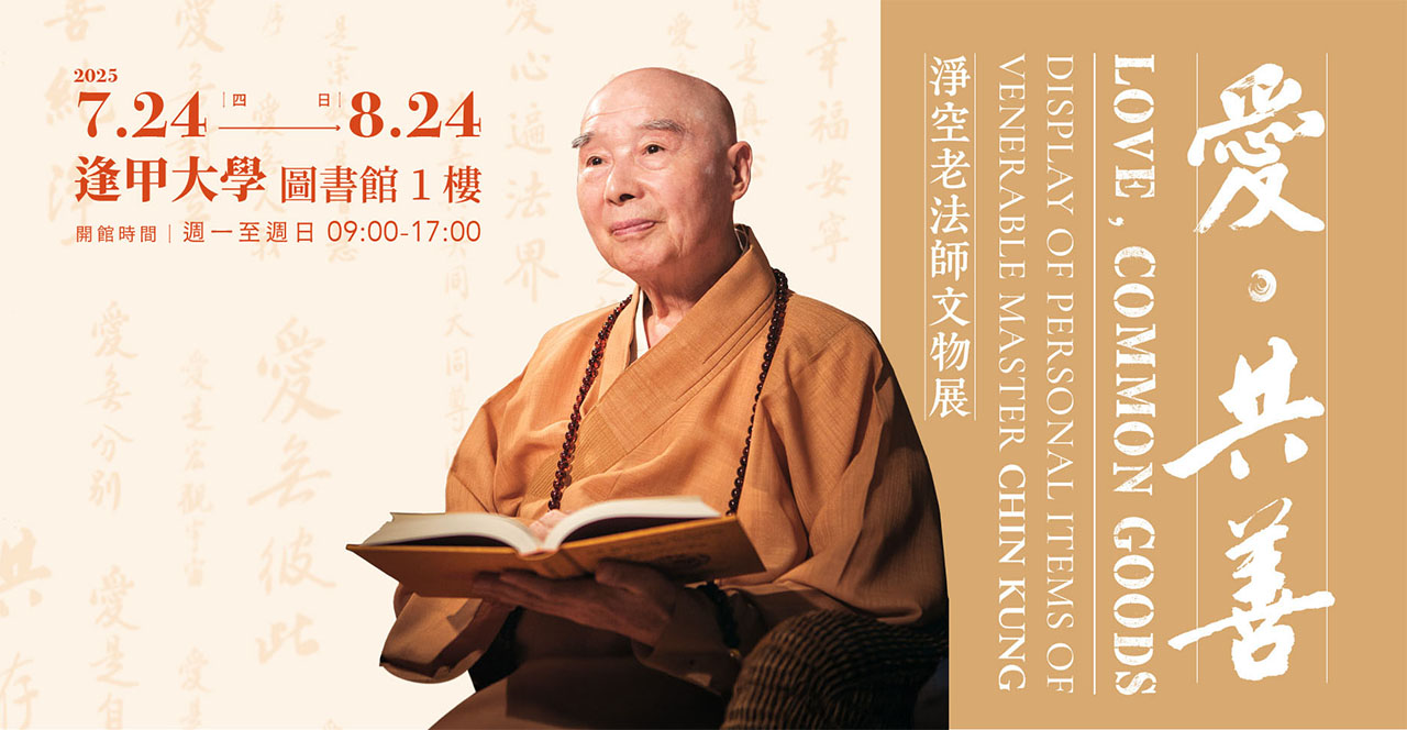 為紀念淨空老法師圓寂三週年,我們誠摯地邀請您參加《愛.共善-淨空老法師文物展》,展覽於7月24至8月24日,在台中逢甲大學圖書館一樓展出。期待您的共襄盛舉!